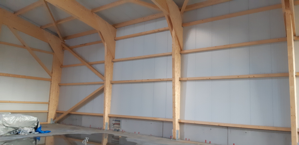 Die Halle ist in Sichtholz-Konstruktion ausgeführt, bauteilaktiviert und somit das ganze Jahr bespielbar.